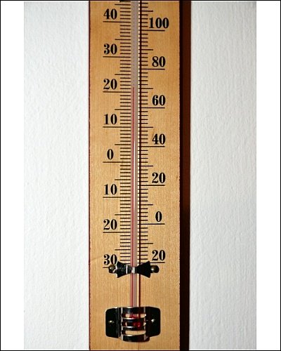 - Image Description: Household thermometer, with both Celsius and Fahrenheit scales. The reading of 21 degrees Celsius (70 degrees Fahrenheit) is normal room temperature.